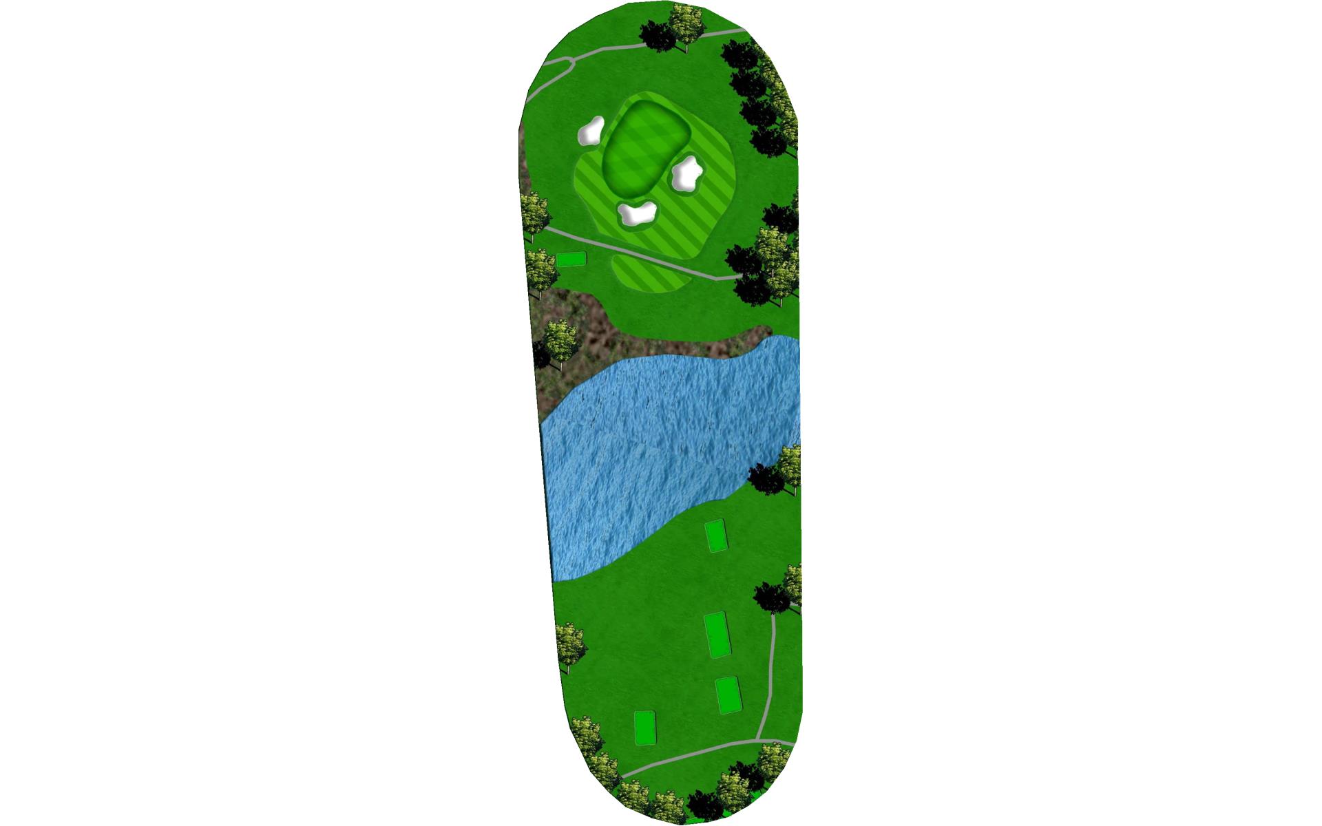 A proper tee shot is up the right side of the fairway to take the penalty area out of play. The correct miss on your approach shot is long a…
