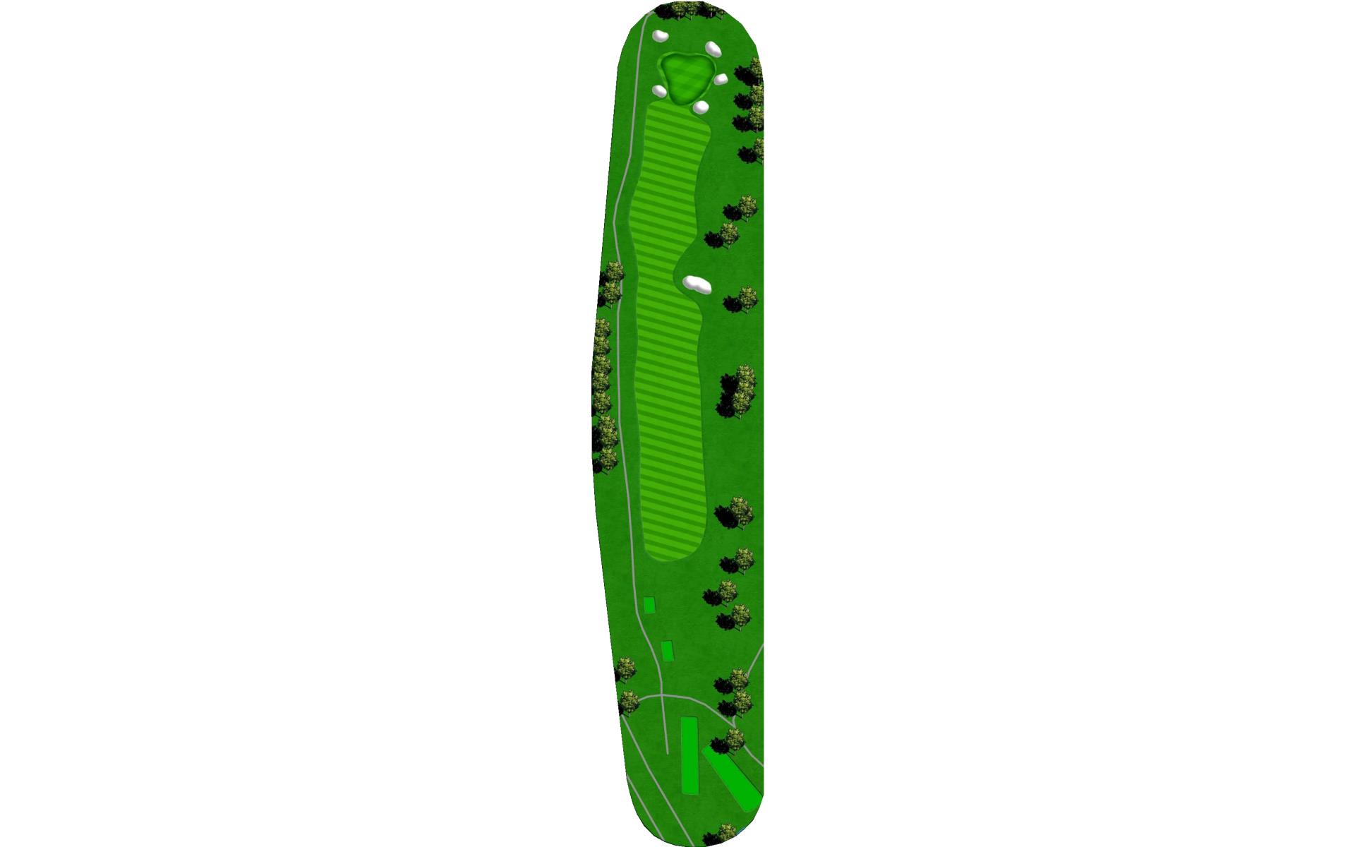 This par 4 has a large landing arena off the tee. The green is guarded by bunkers on the left and right, so an accurate approach shot is required.