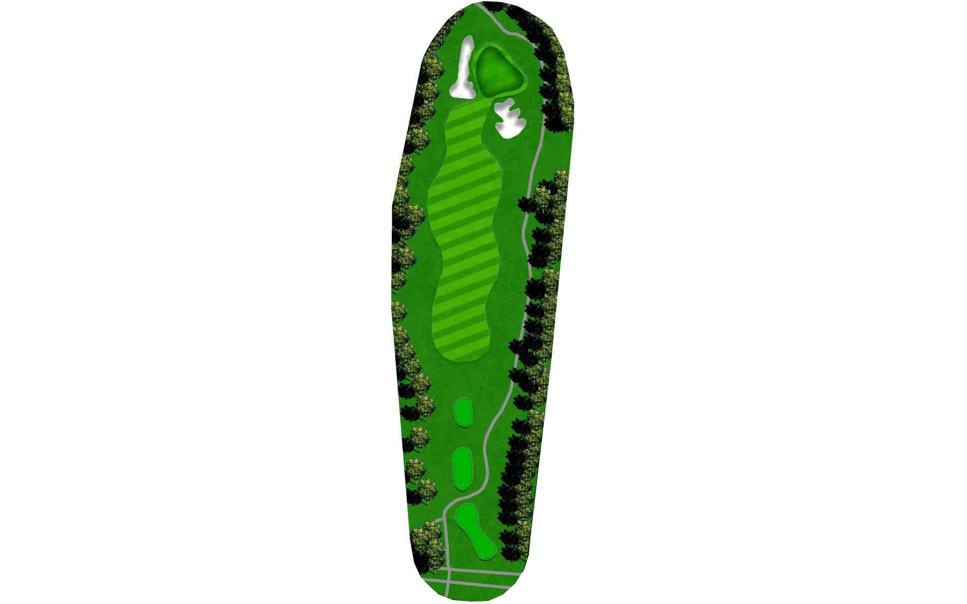 With a forced carry off the tee and water down the entire left side, this is the hardest hole on the course. Aim your tee shot just short of the bunker to leave yourself a 125 to 175 yard shot to the green. With a huge slope in the middle of the green, your approach shot should land near the front of the green if you wish to have a putt for birdie.