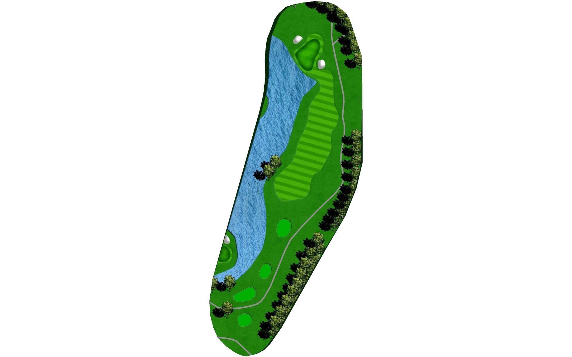 The final hole is the hardest par 3 on the course. With a forced carry over water, aiming right and playing a right to left shot is ideal if you wish to avoid all the trouble that surrounds this green.