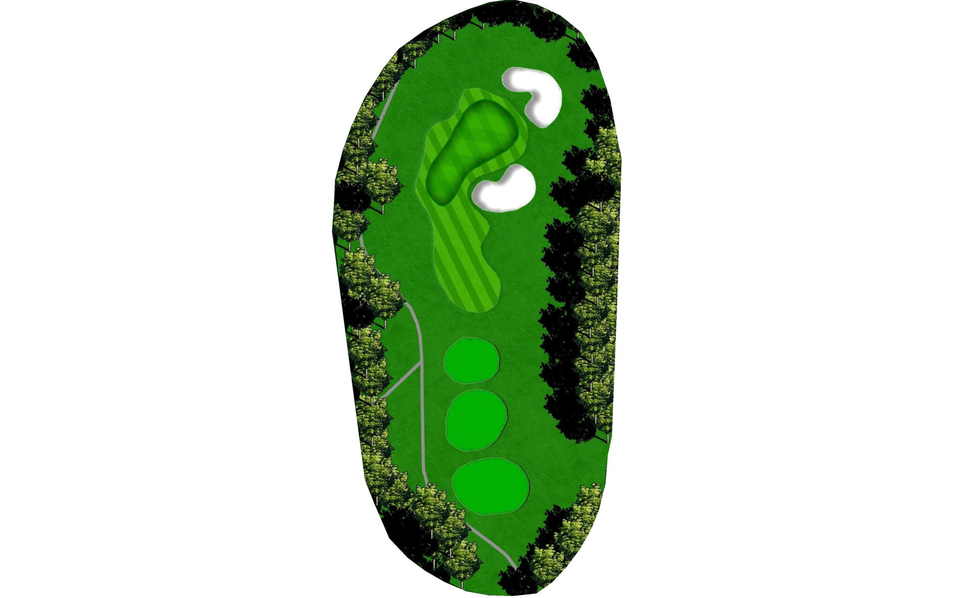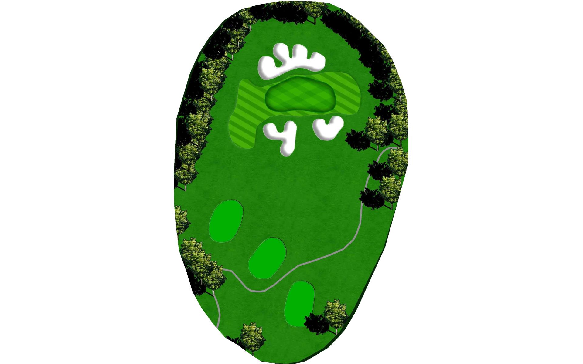 A short par 3 where the green slopes away from you off the tee. A high tee shot is ideal if you want to guarantee your ball to stay on the green. Trouble short and long.