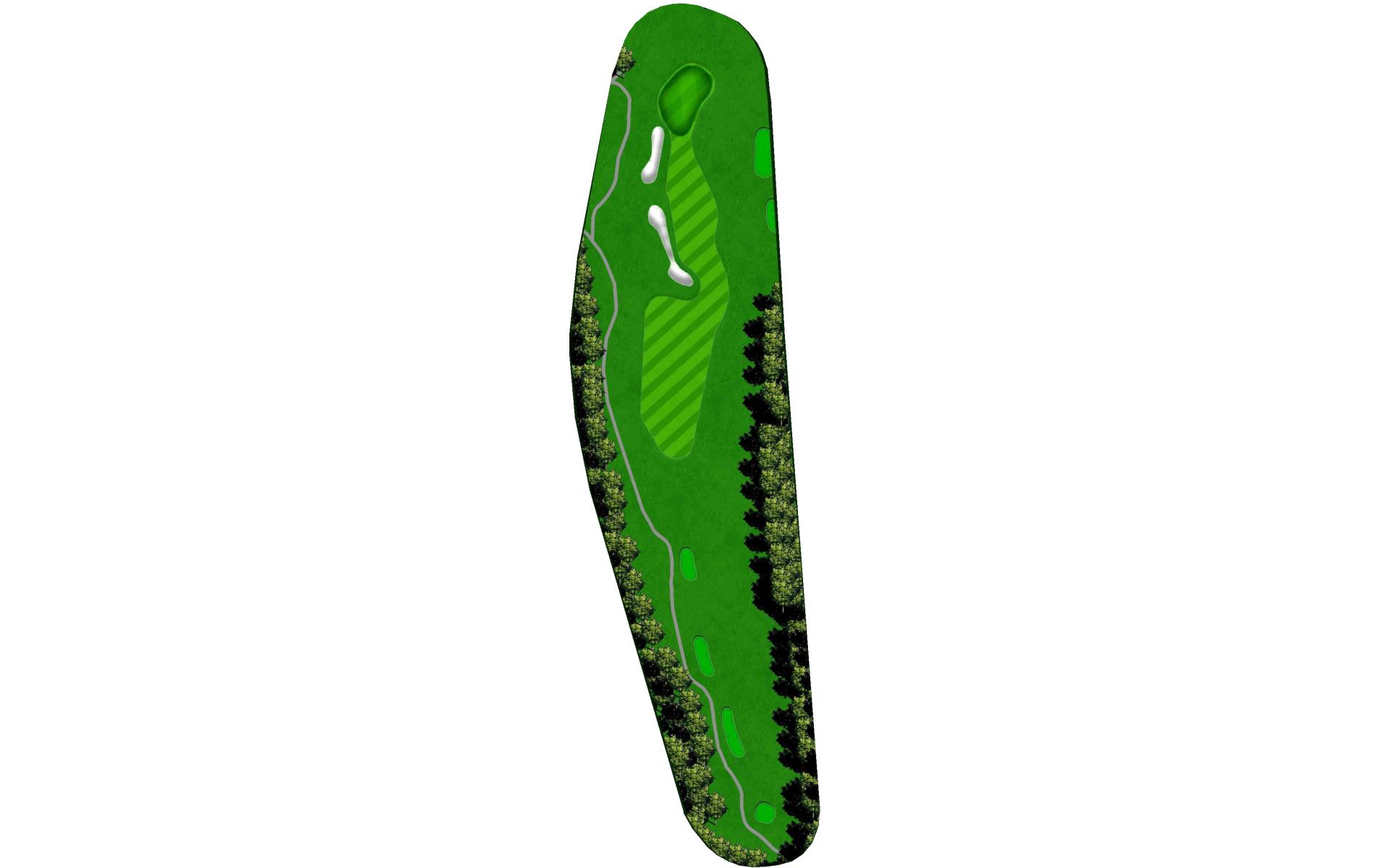 Solid par 4 with slight dogleg right. Trees on both sides of the landing area make accuracy important. OB left sneaks into play quicker than you think. Slender angled green awaits second shots with large swells right and long making up and downs difficult.