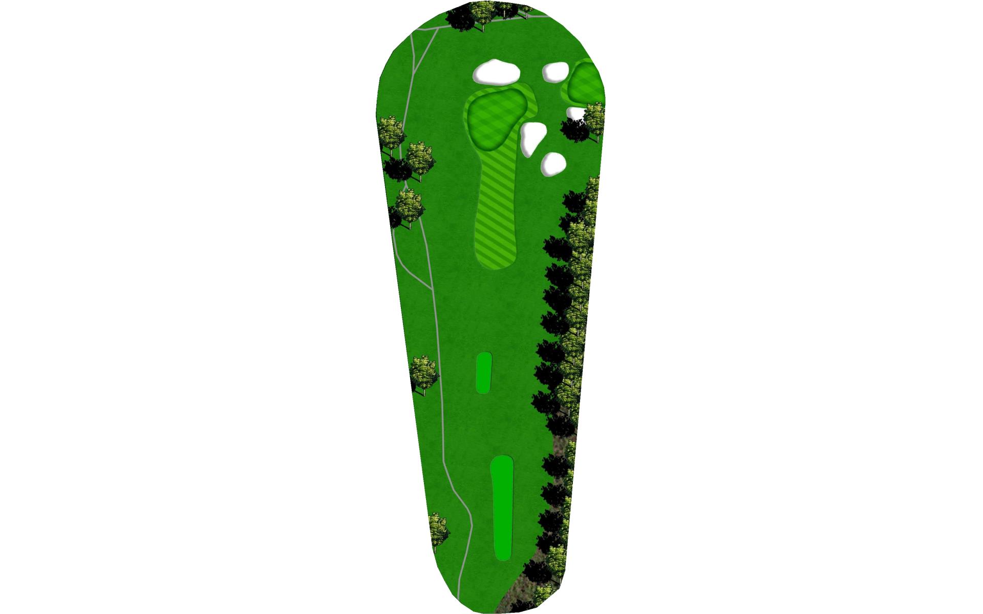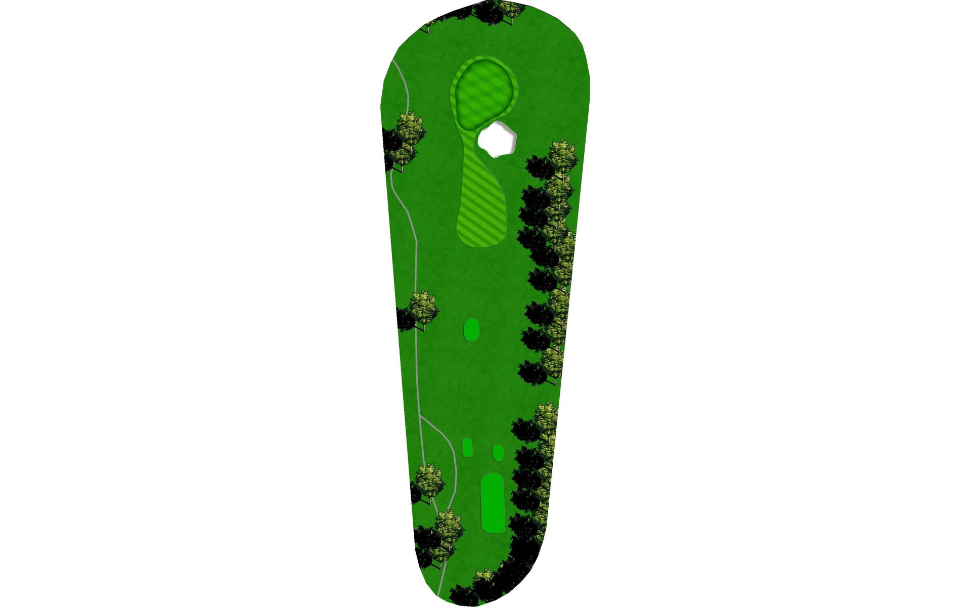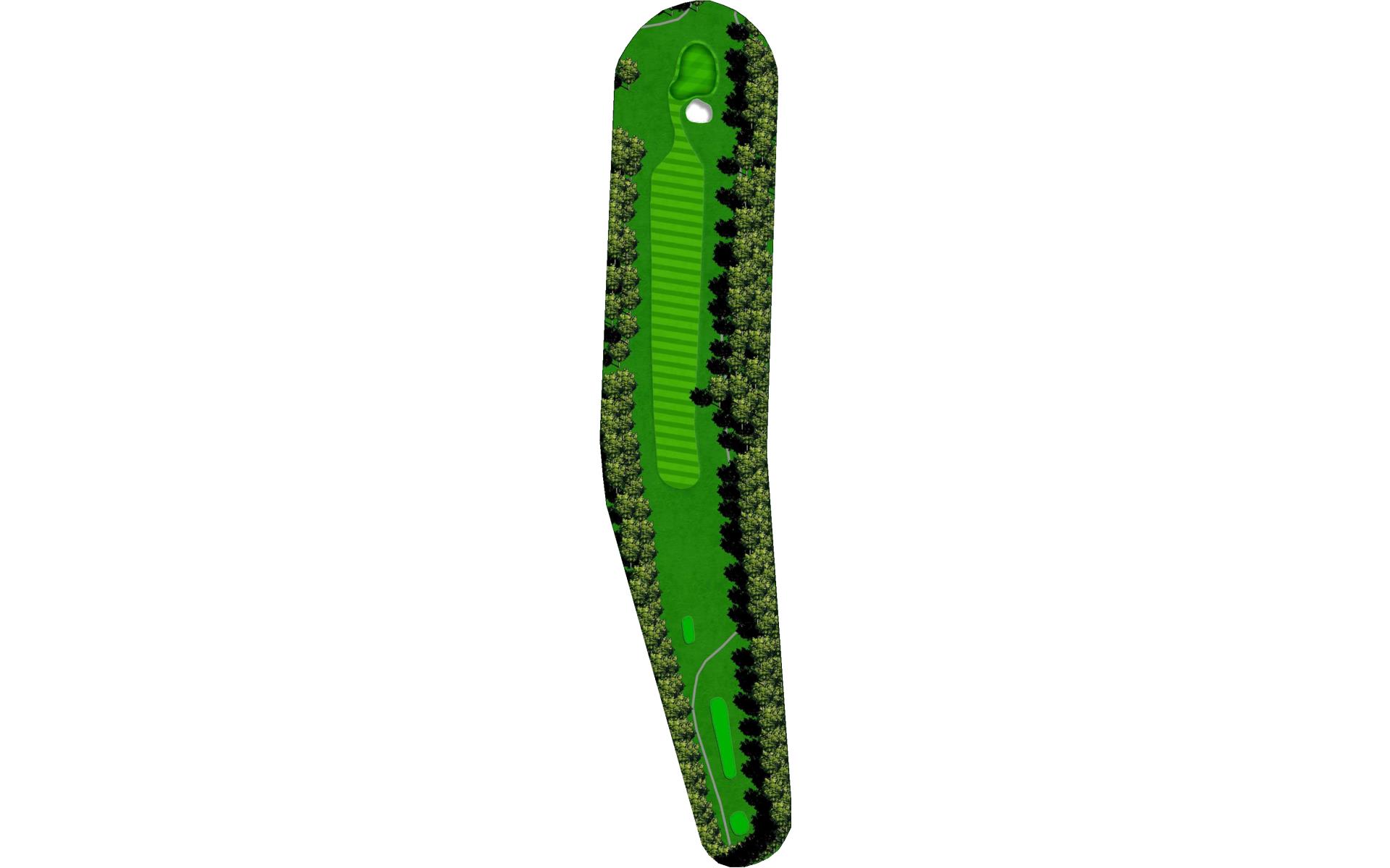 The first hole is a straight shot to the green. There is out of bounds to the left and guarded by trees on both sides. This back to front sl…