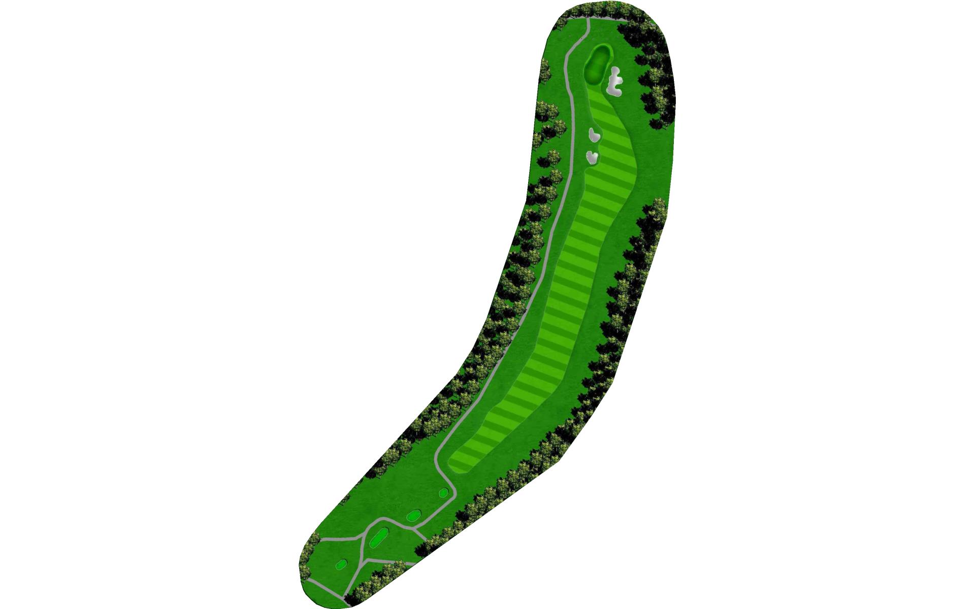 A difficult dog leg right, par 4 with a sloping fairway to the right. Out of bounds left and a penalty area to the right will require an accurate