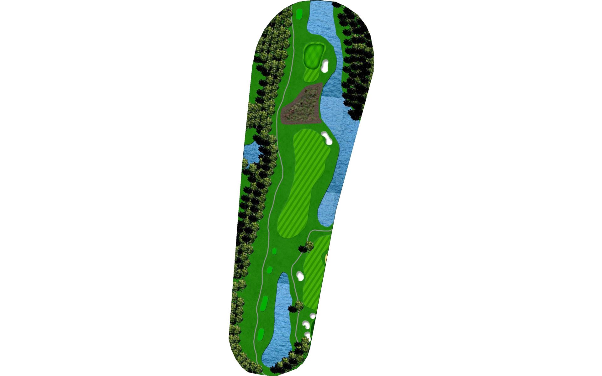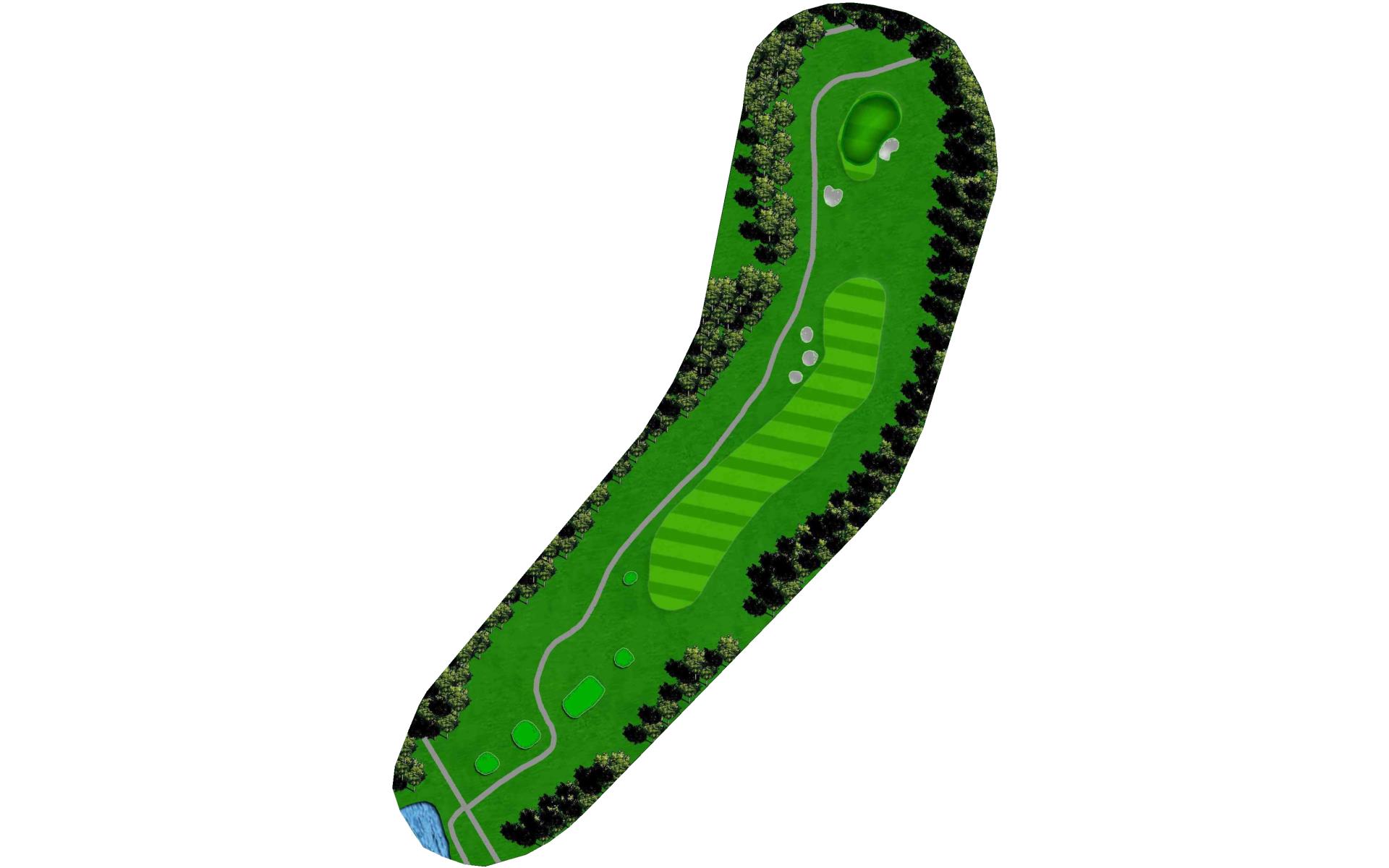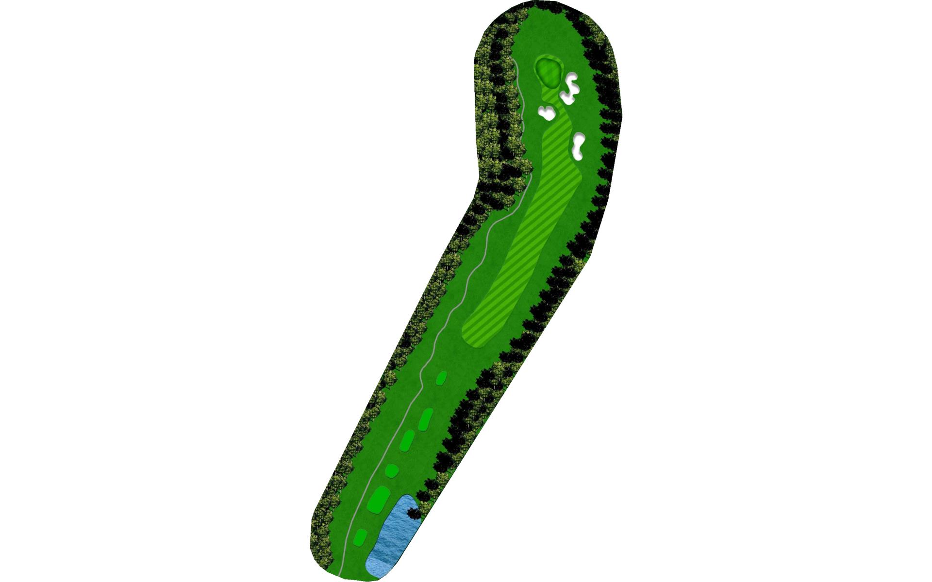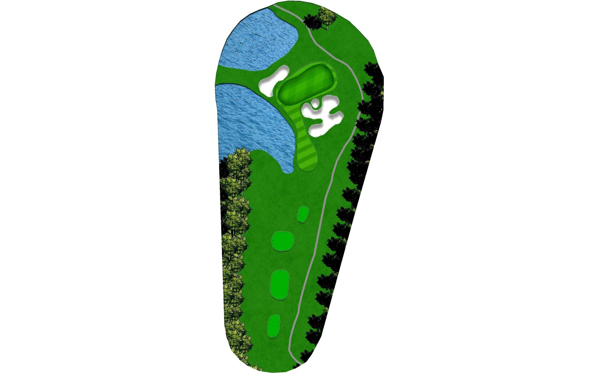 A straight away par 4 with a wetland area 250 yards off the tee requiring long hitters to lay-up off the tee. A large lake on the entire right side of this hole comes into play. A large green with many challenging hole locations.