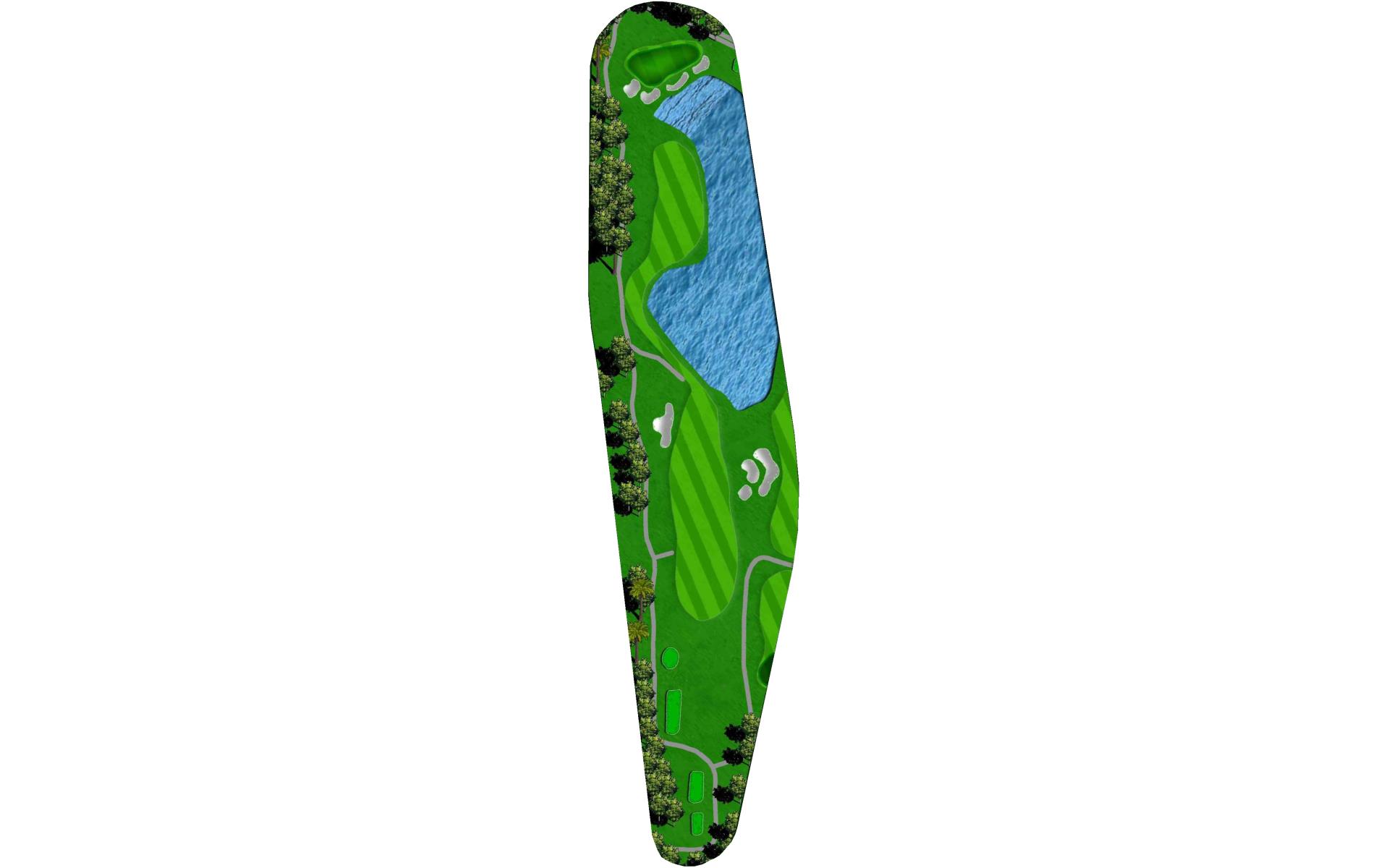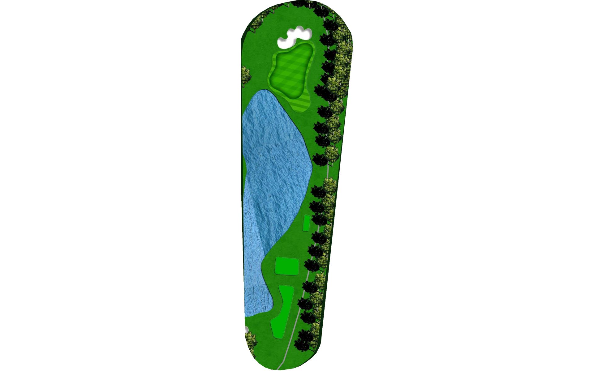 "Bagpipes" is a long par 4 that sets up for a challenging finish. A good drive leaves a long approach into yet another peninsula green. Extreme undulation in the middle parts of the green make placement on the second shot paramount to success with the putter.